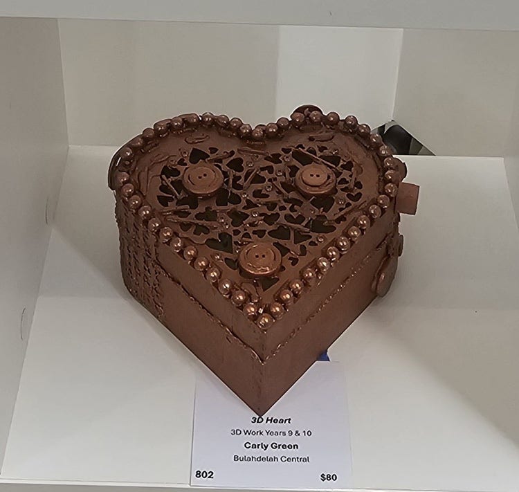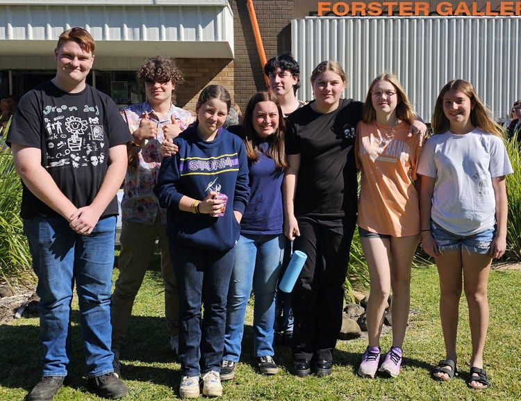 Students from the Visual Art and Design program at Bulahdelah Central School proudly participated in this year’s highly anticipated Forster Young Artists exhibition. This annual event celebrates emerging artistic talent from schools across the region. The award ceremony was held on Sunday, 19 September at the Forster Gallery, a prominent local venue known for showcasing both established and upcoming artists.